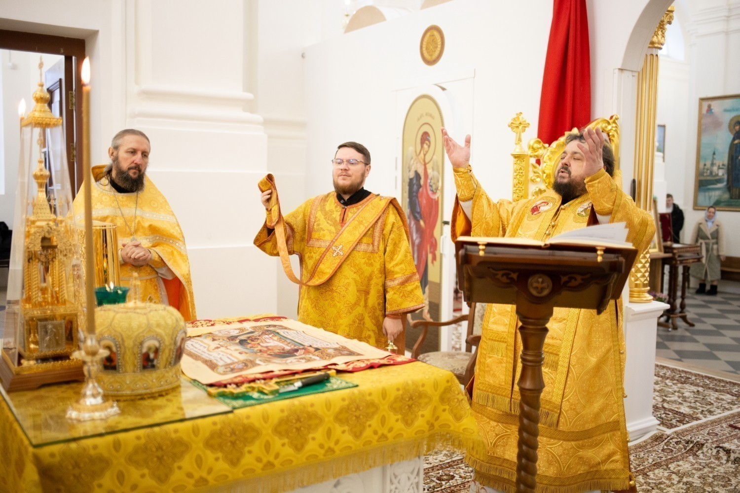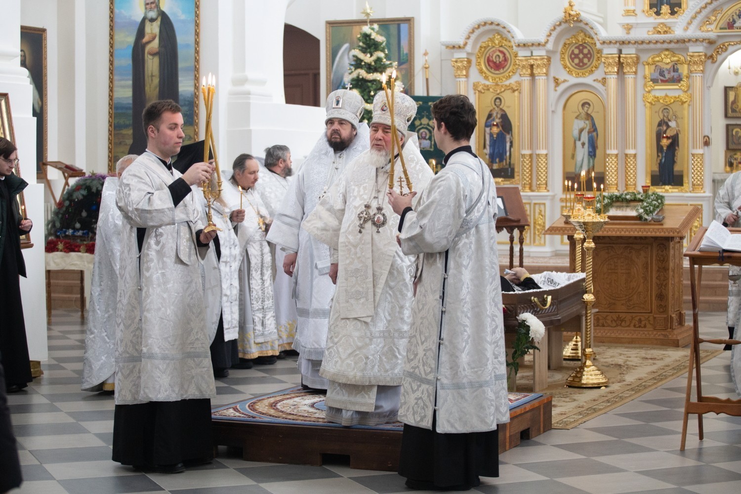 В неделю святых Праотец епископ Несвижский Авксентий совершил Литургию в соборе Рождества Пресвятой Богородицы Юровичского монастыря